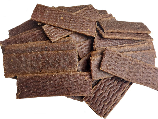 Kangaroo Jerky soft chewy strap is an extruded strap